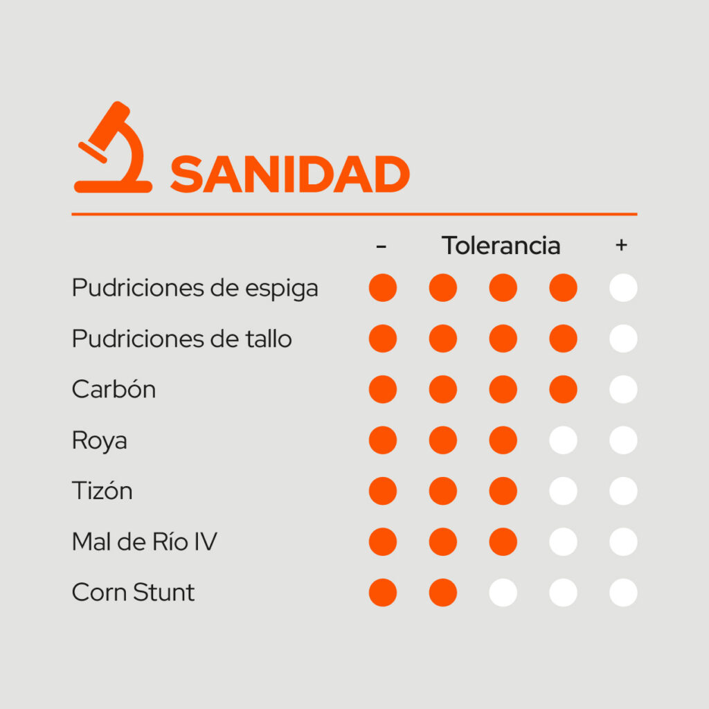 Presenta versatilidad en fecha de siembra: temprana para anticipar la cosecha o tardía en planteos de segunda o maíz sobre maíz. Posee excelente comportamiento frente a vuelco y quebrado, y destacada tasa de secado para picado.