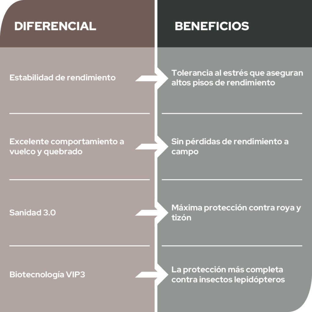 Es un híbrido de la nueva generación desarrollada por el programa de KWS para el norte de Córdoba, NEA y NOA. Su ciclo intermedio, protección Viptera 3, perfil sanitario, agronómicos y estabilidad de rendimiento lo posicionan como líder para siembras tardías en ambientes con alta presión de enfermedades.